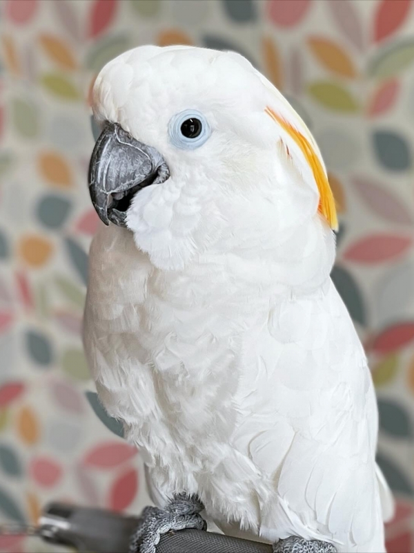 ③濃い黄色のトサカと白い羽毛が美しく、目の周りの表情はルリメタイハクオウムに似ています。