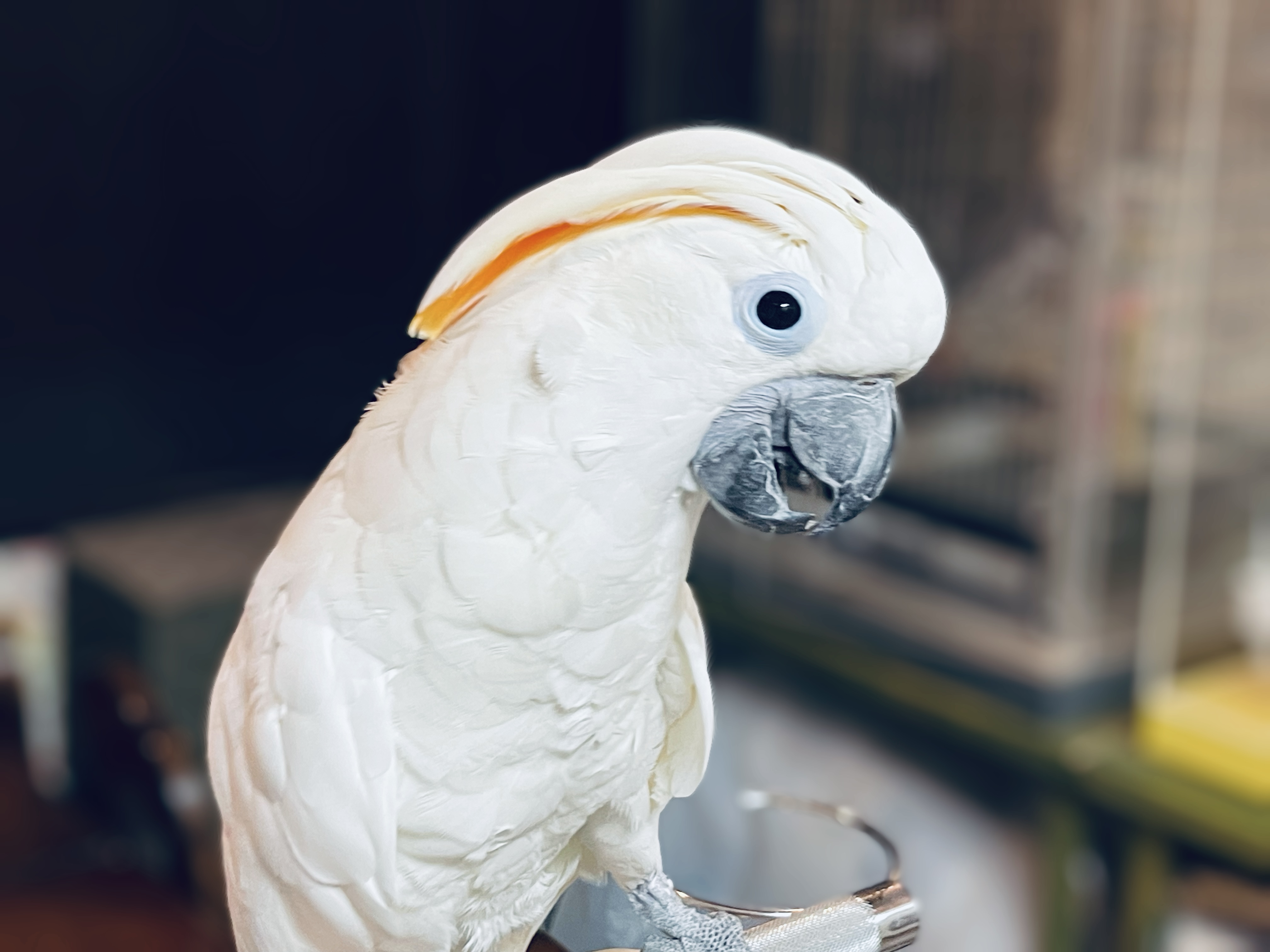オオバタンとルリメタイハクオウムの交配種と推定される、非常に珍しいハイブリット個体(※オオバタンの純血種ではありません)が入店しました。全身はルリメタイハク系らしい美しい白色を基調とし、体格や雰囲気はオオバタンに近く、優雅さと存在感を兼ね備えた1羽です。